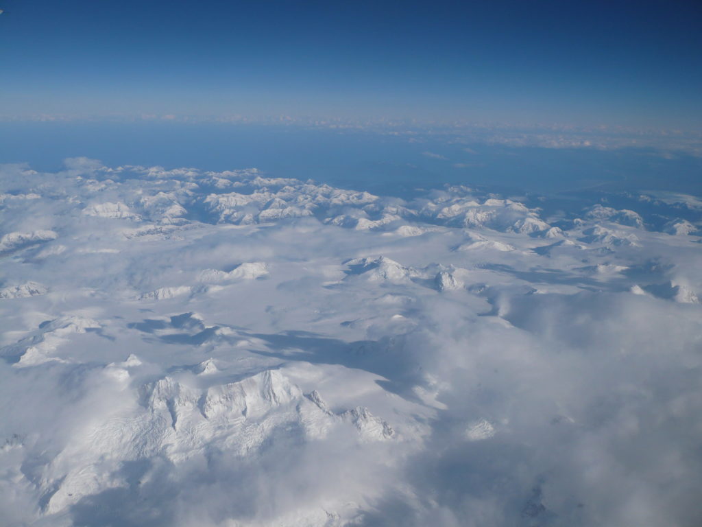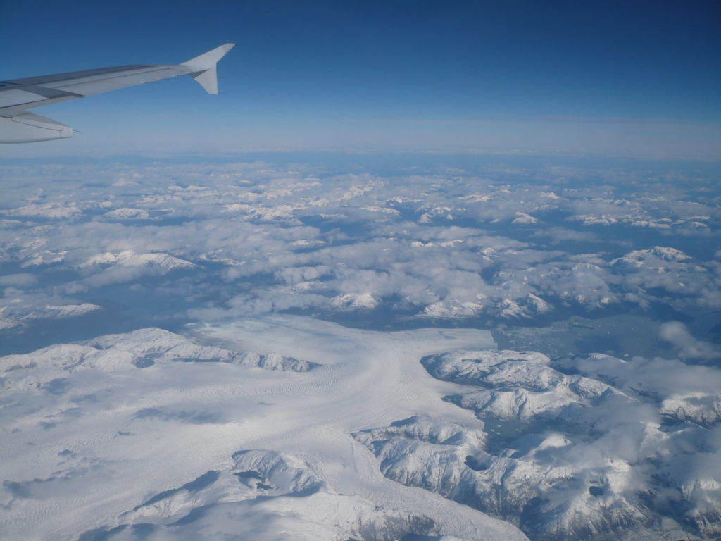 It took a day to fly between the Falklands and Chile (Santiago) with a stop in Punta Arenas. The flight provided some glimpses of the fantastic scenery that Chile has to offer with huge jagged snow covered peaks battling for space with dirty blue glaciers.