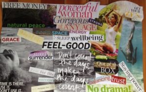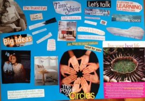 You can create your vision board by grabbing a bunch of your favourite magazines and some scissors. Choose the images that call to you and get snipping.   Either glue the images to a sheet of paper or pin them onto a cork board.   These are some wonderful examples from participants in my past courses:   If you’d rather have a vision board that you can always have with you, on your phone or tablet, then come this way . . .