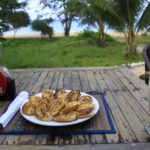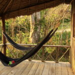 The wooden bungalows all have 2 double beds so you can come by yourself or as in group. The ensuite bathroom is basic and comes complete with a resident gecko. The veranda with its hammocks was one of my favourite places to relax. The beach was only about 15 metres away and I had a private walk way down to it. Large trees lined the shore and the local birdlife kept me amused with their antics. The crested hornbills are LOUD!